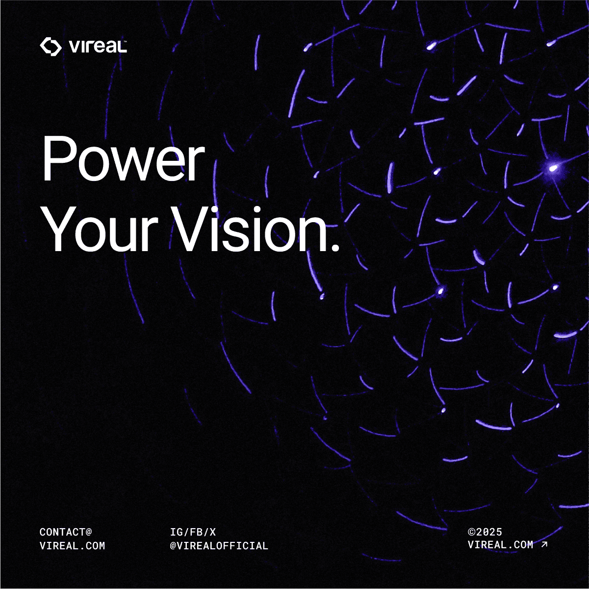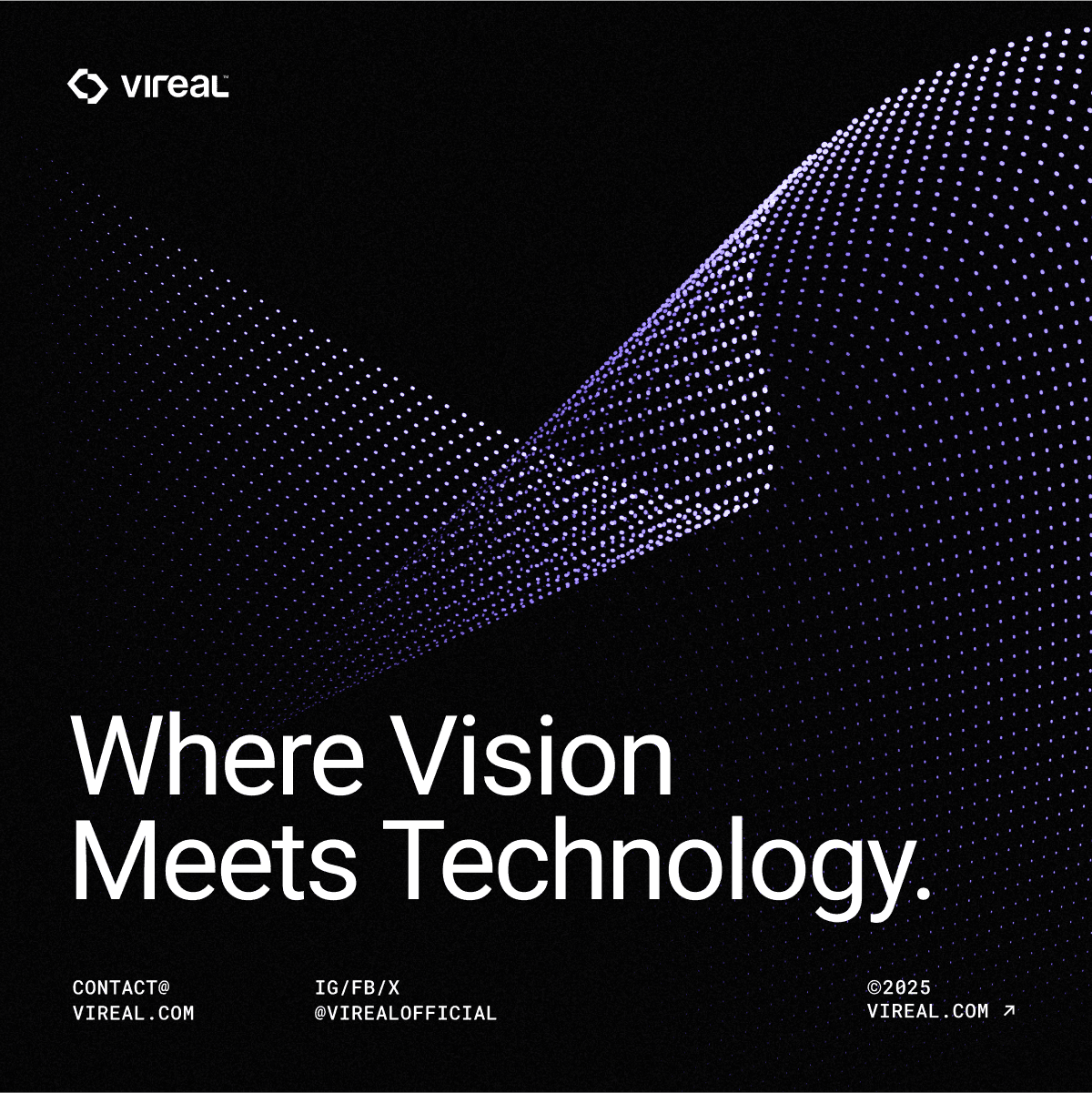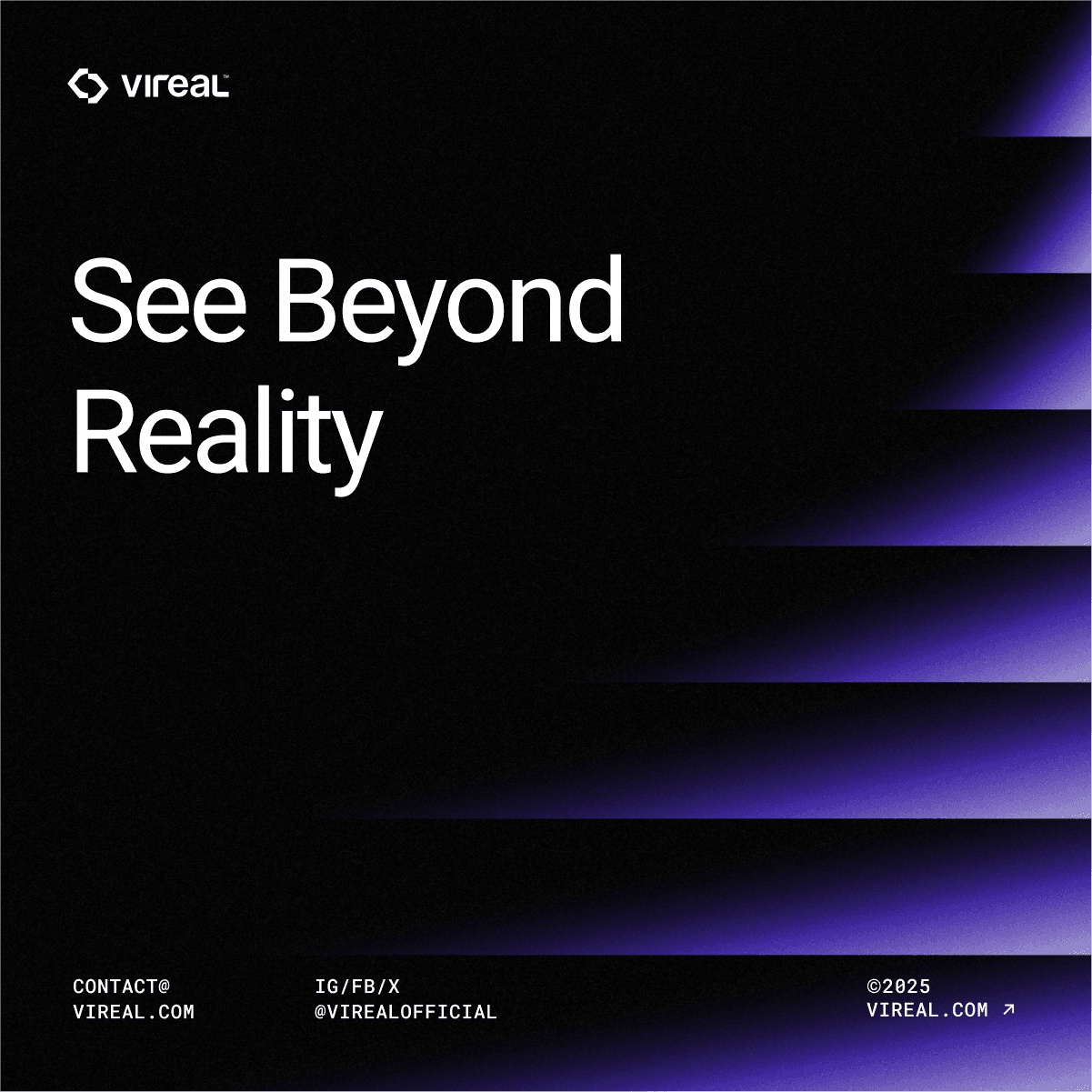 Vireal is an AR/VR eyewear brand made for the new generation of digital explorers. With a mission to enhance the way people see, Vireal combines technology, design, and immersive experiences to help users look beyond the real world and enter endless digital spaces. The brand adopts a minimal, modern, and futuristic visual style. Its design is based on simple layouts, negative space, and a unique futuristic purple color - creating a feeling of digital depth, new ideas, and a smart, space-inspired vibe.